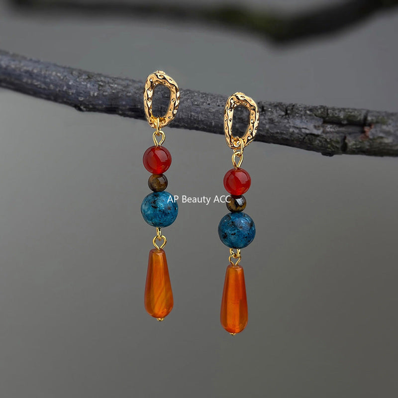 C관 - 천연 홍마노 터키석 스트로베리 쿼츠 핸드메이드 귀걸이 [S17] 25.10-3