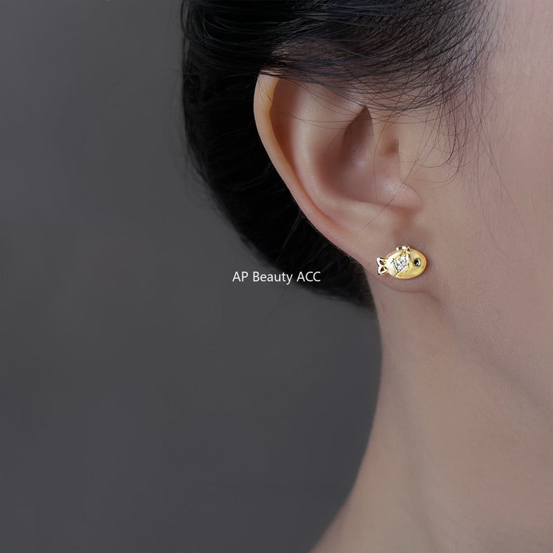 C관 - 925 은침 비대칭 물고기 고양이 미니 큐빅 귀걸이 [6931] 25.10-3