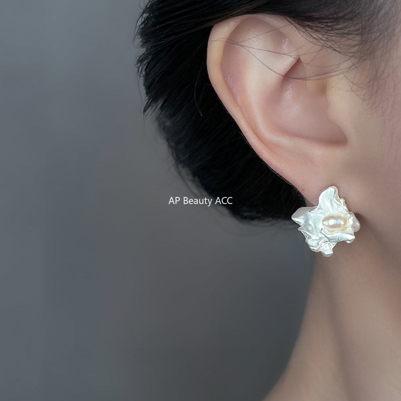C관 - 925 은침 불규칙 리퀴드 디자인 담수진주 귀걸이 [6852] 25.10-3