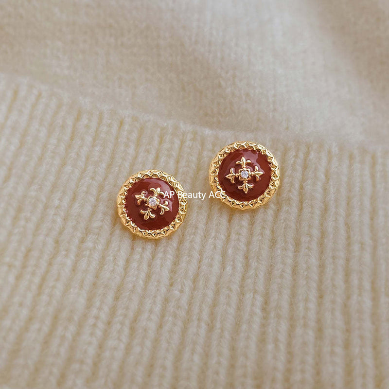 C관 - 925 은침 원형 버튼 핸드페인팅 귀걸이 [7037] 25.11-1
