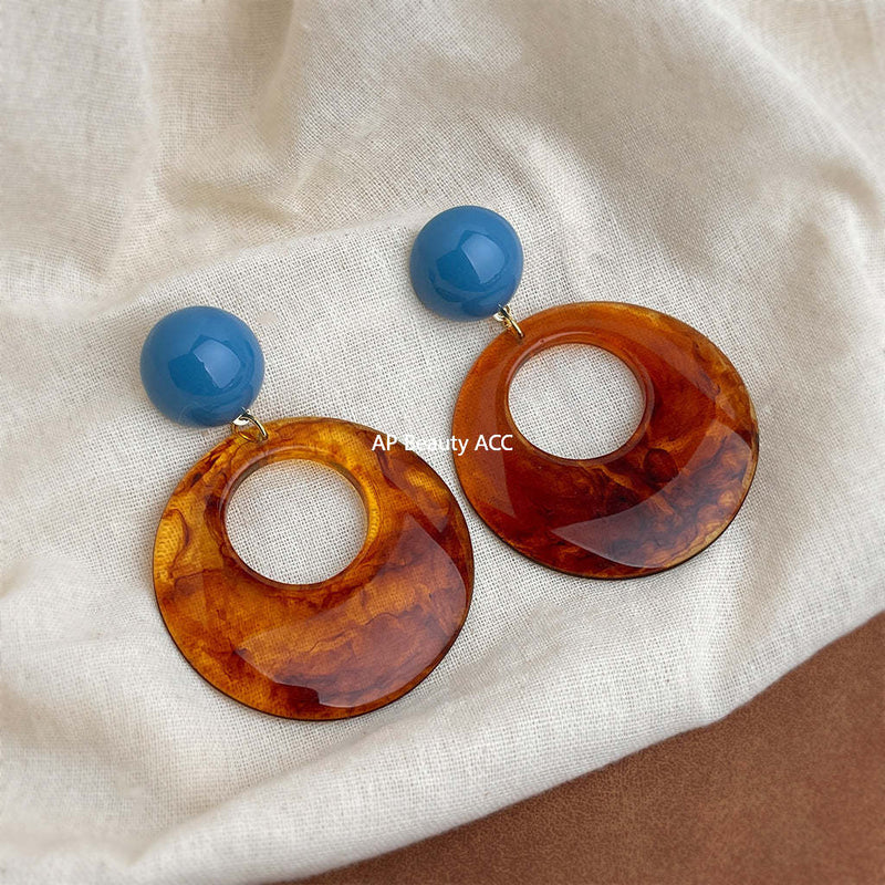 C관 - 대형 원형 레진 블루 볼 핸드메이드 귀걸이 [7029] 25.11-1