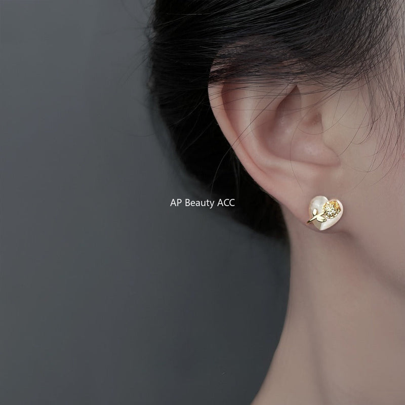 C관 - 925 은침 하트 모얀석 튤립 플라워 귀걸이 [6916] 25.10-2
