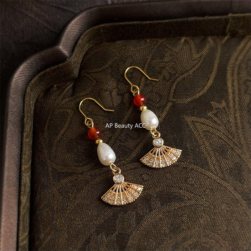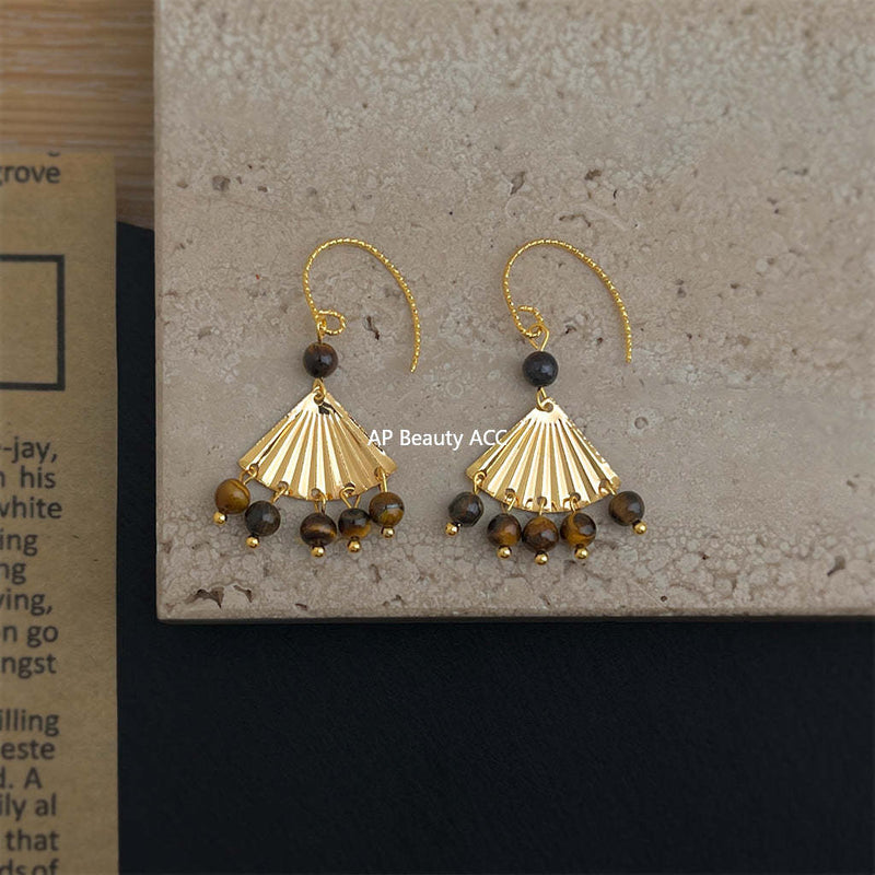C관 - 천연 호안석 부채 디자인 핸드메이드 후크형 귀걸이 [7020] 25.11-1