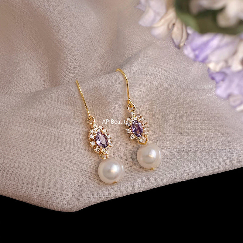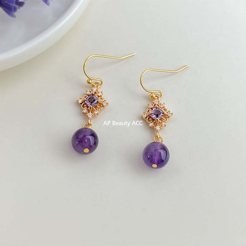 C관 - 천연 자수정 큐빅 핸드메이드 후크형 귀걸이 [7019] 25.11-1