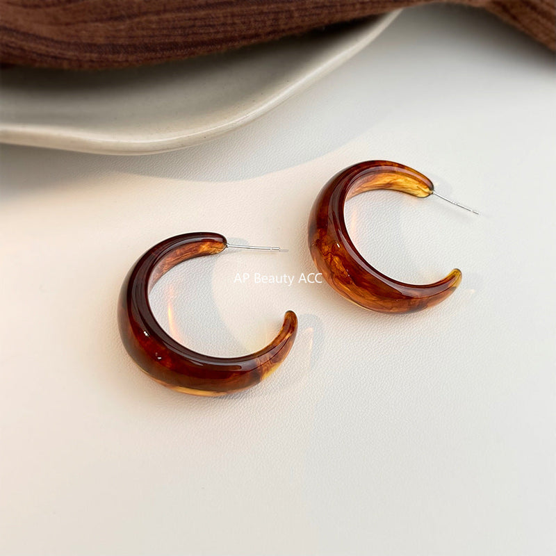 C관 - 925 은침 브라운 원형 레진 대형 귀걸이 [7004] 25.11-1