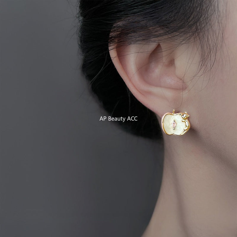 C관 - 925 은침 사과 고양이 큐빅 귀걸이 [6895] 25.10-2
