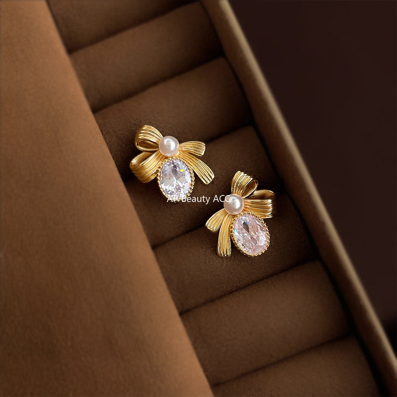 C관 - 925 은침 진주 큐빅 리본 귀걸이 [6913] 25.10-2