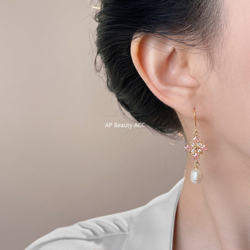 C관 - 천연 담수진주 미니 큐빅 핸드메이드 후크 귀걸이 [7027] 25.11-1