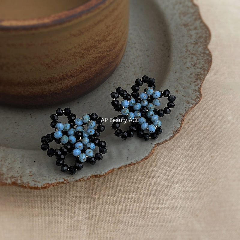 C관 - 925 은침 핸드메이드 비즈 플라워 귀걸이 [6861] 25.10-1