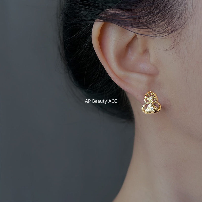 C관 - 14K 도금 925 은침 전통 패턴 모양 큐빅 귀걸이 [6867] 25.10-1