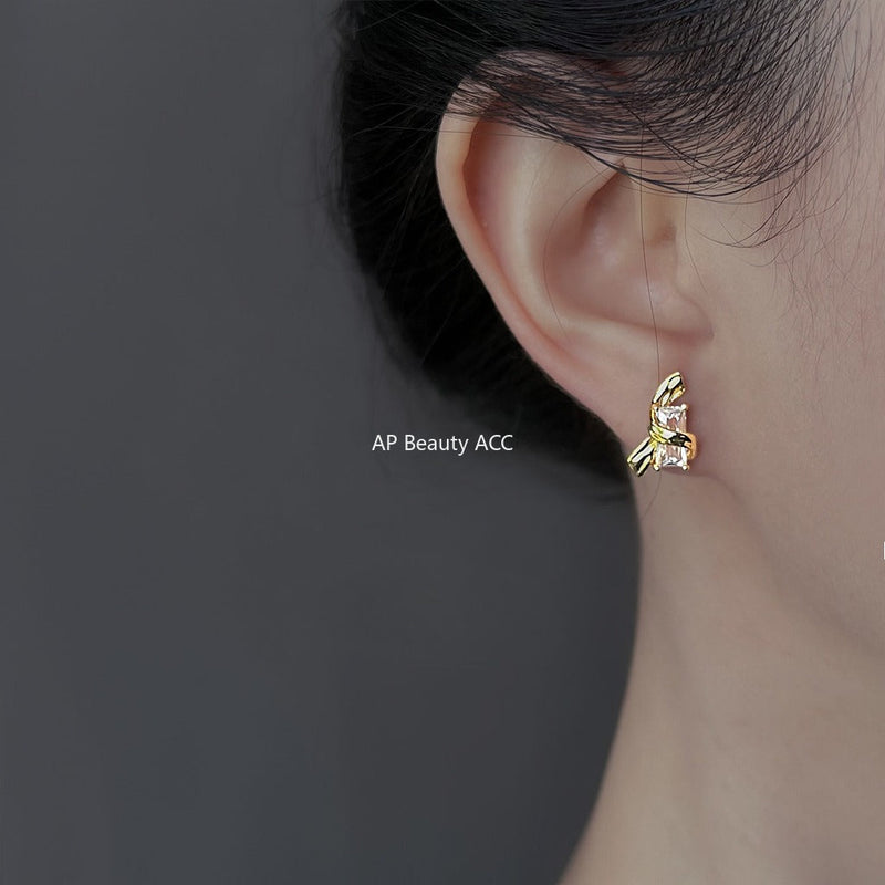 C관 - 14K 도금 925 은침 리본 큐빅 귀걸이 [6866] 25.10-1