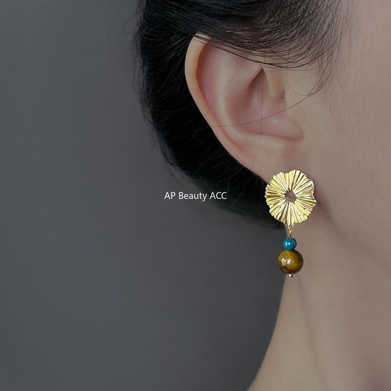 C관 - 핸드메이드 925 은침 천연 호안석 골드 원형 귀걸이 [6873] 25.10-1