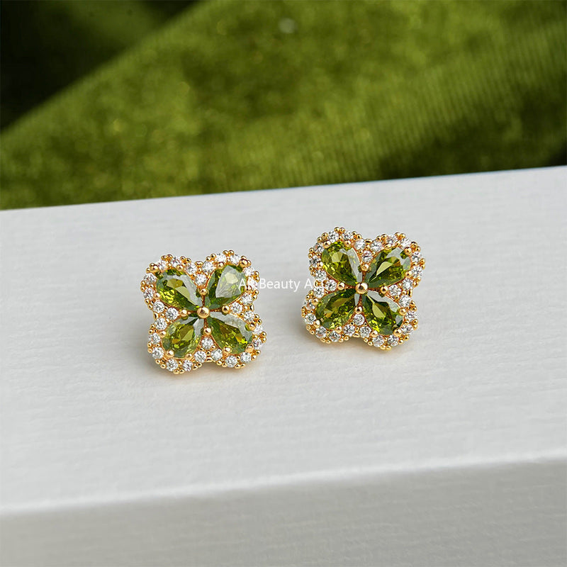 C관 - 925 은침 올리브 그린 큐빅 클로버 스터드 귀걸이 [6829] 25.10-1