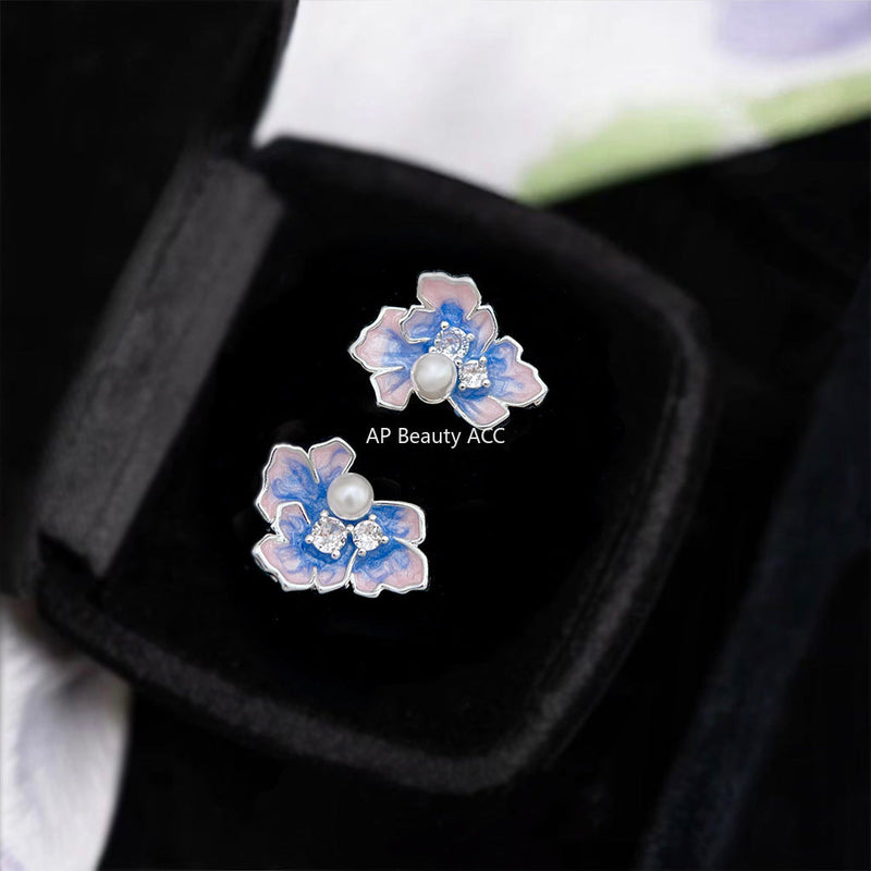 C관 - 925 은침 핸드페인팅 플라워 큐빅 진주 귀걸이 [6863] 25.10-1