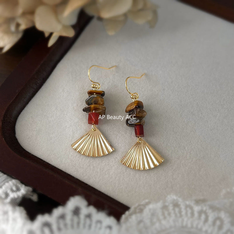 C관 - 핸드메이드 천연 호안석 부채모양 후크형 귀걸이 [6862] 25.10-1