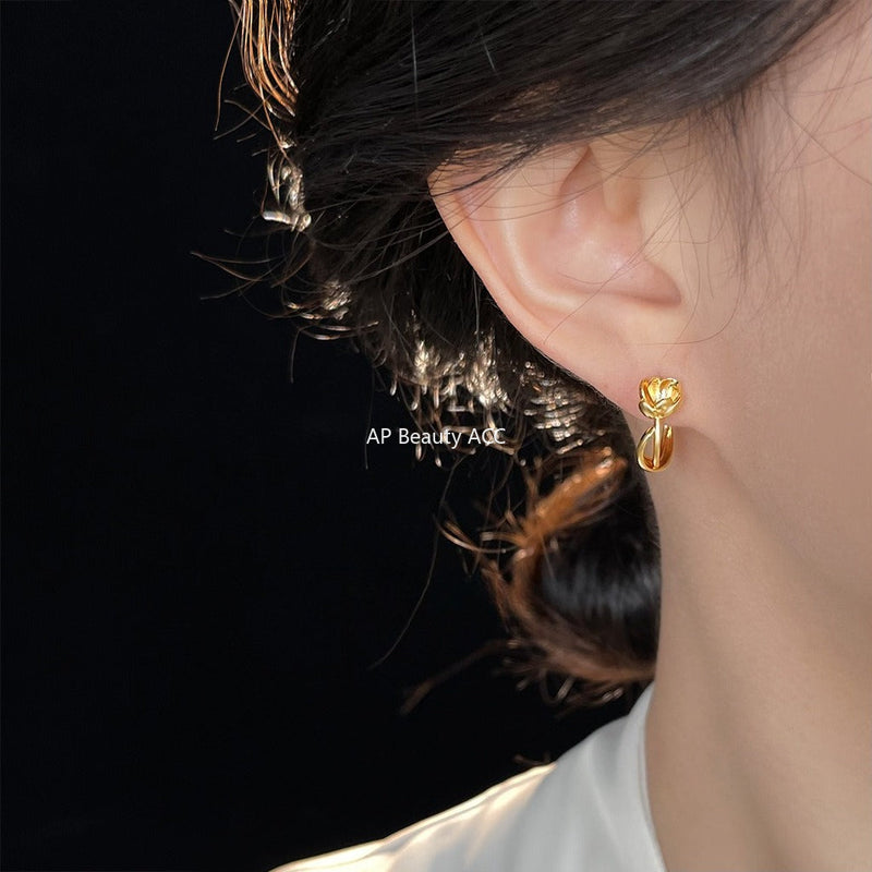 C관 - 925 은침 미니멀 장미 플라워 스터드 귀걸이 [6694] 25.10-1
