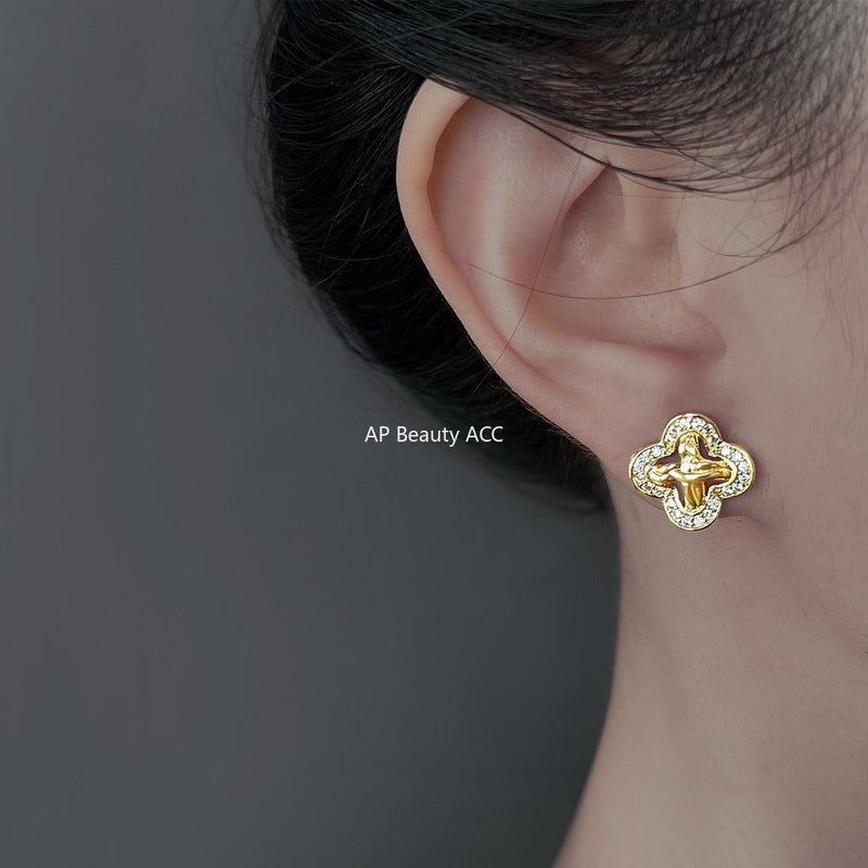 C관 - 925 은침 큐빅 클로버 모양 귀걸이 [6879] 25.10-1