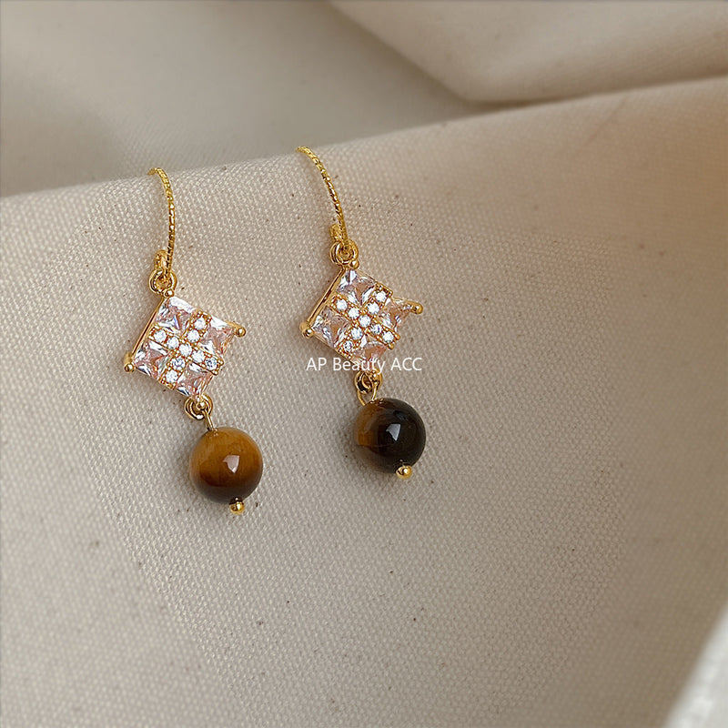 C관 - 핸드메이드 천연 호안석 큐빅 후크형 귀걸이 [6874] 25.10-1