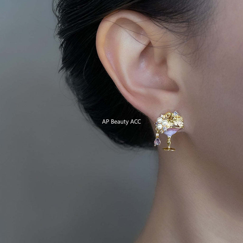 C관 - 큐빅 진주 핸드페인팅 와인잔 디자인 925 은침 귀걸이 [6831] 25.09-4