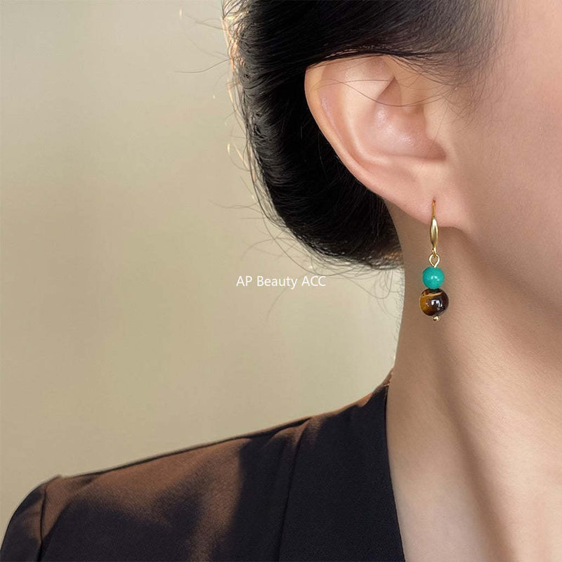 C관 - 14K 도금 호안석 터키석 핸드메이드 후크형 귀걸이 [6812] 25.09-4
