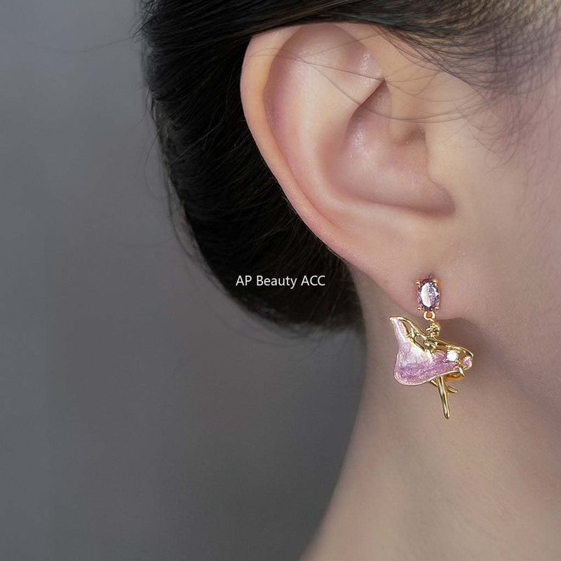 C관 - 925 은침 큐빅 핸드페인팅 발레 소녀 디자인 귀걸이 [6830] 25.09-4