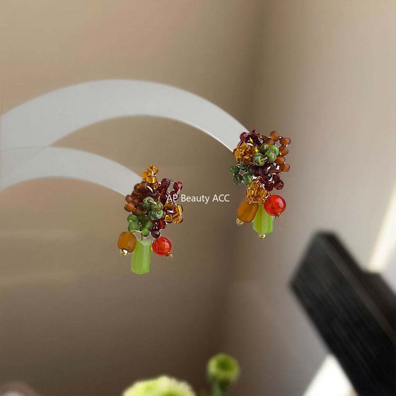 C관 - 핸드메이드 쌀알 비즈 플라워 925 은침 귀걸이 [S269] 25.09-4