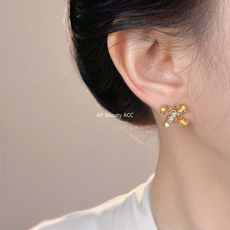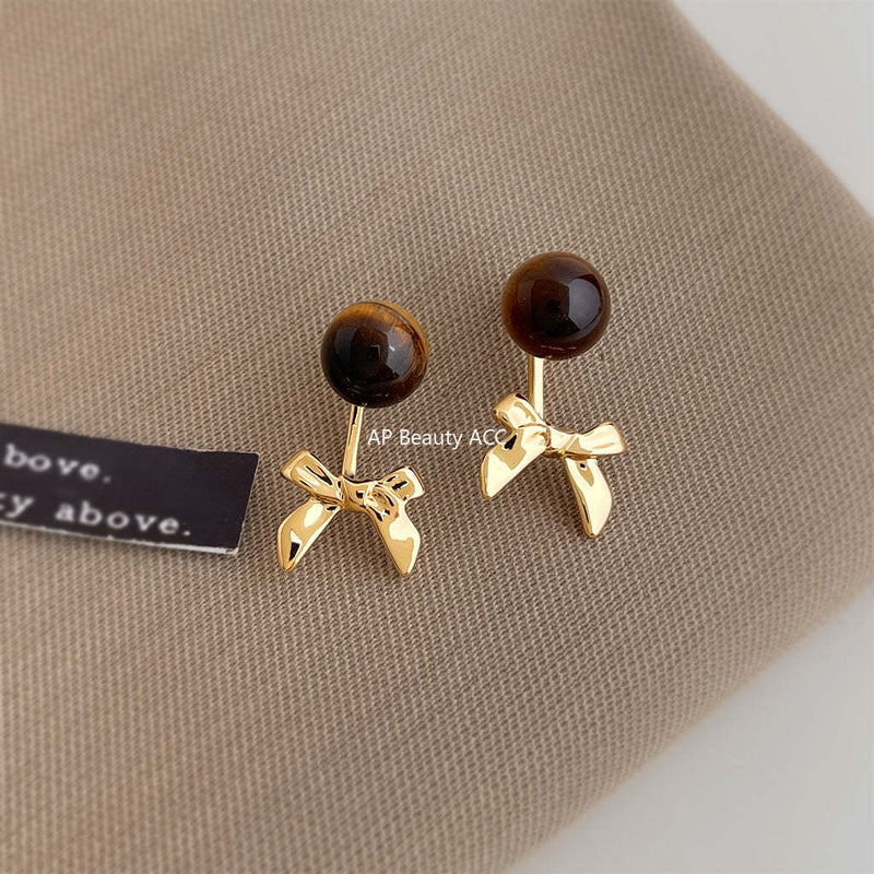 C관 - 천연석 호안석 리본 925 은침 귀걸이 [7210] 25.12-2