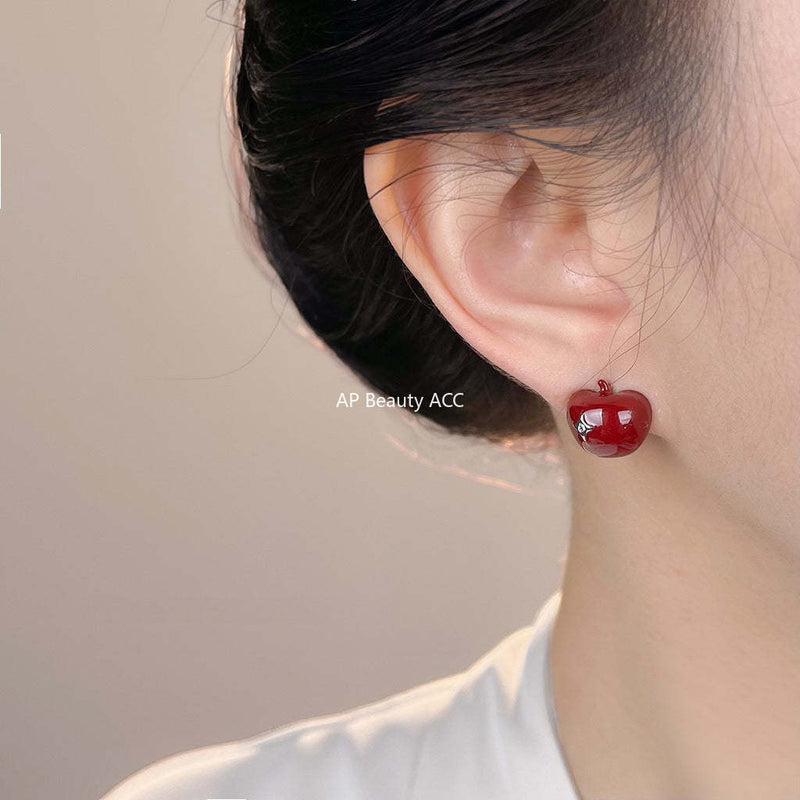 C관 - 핸드페인팅 사과 비대칭 925 은침 귀걸이 [7174] 25.12-1