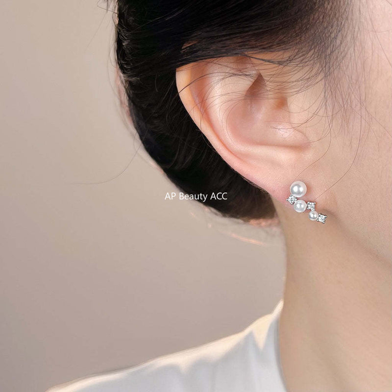C관 - 925 은침 진주 큐빅 비정형 귀걸이 [7201] 25.12-1