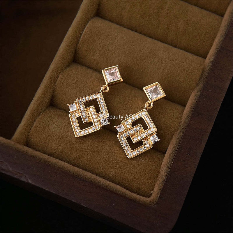 C관 - 더블 사각 큐빅 드롭 925 은침 귀걸이 [7197] 25.12-1