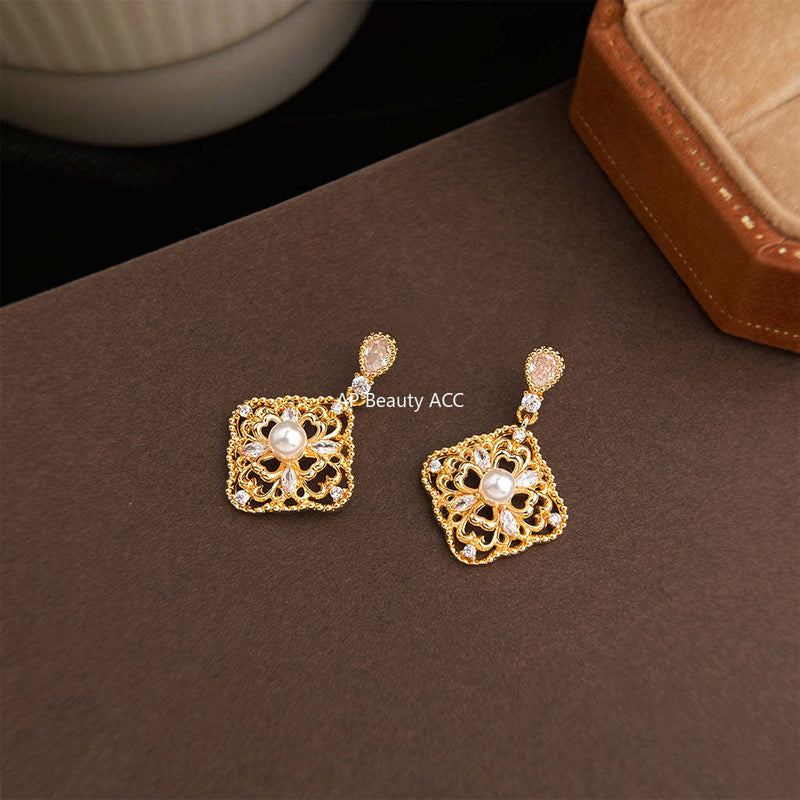 C관 - 큐빅 사각 문양 펜더트 925 은침 귀걸이 [7195] 25.12-1