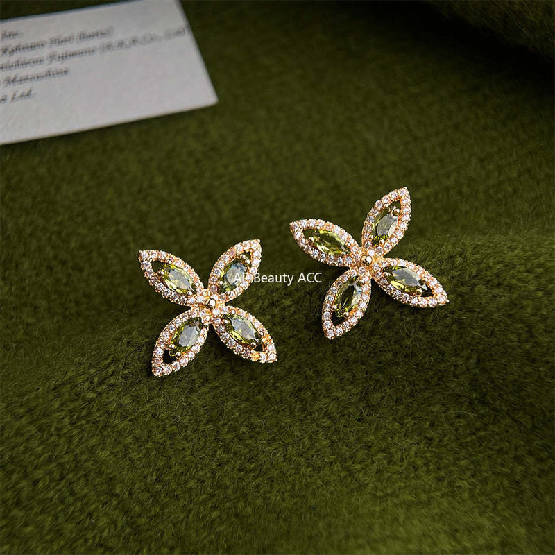 C관 - 네잎 플라워 모양 큐빅 925 은침 귀걸이 [7194] 25.12-1