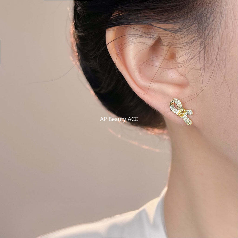 C관 - 매듭 리본 디자인 큐빅 925 은침 귀걸이 [7185] 25.12-1