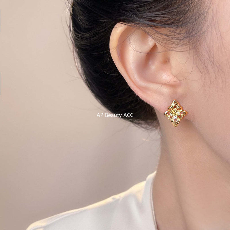 C관 - 다이아 모양 플라워 큐빅 925 은침 귀걸이 [7164] 25.11-4