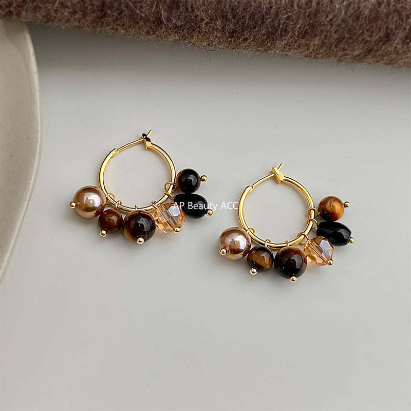 C관 - 호안석 흑마노 진주 크리스탈 핸드메이드 링 귀걸이 [7145] 25.11-4