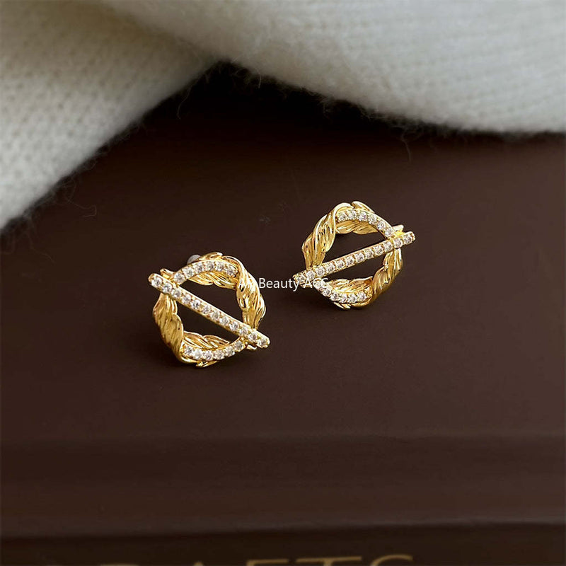 C관 - 밀 이삭 원형 큐빅 925 은침 귀걸이 [7153] 25.11-4