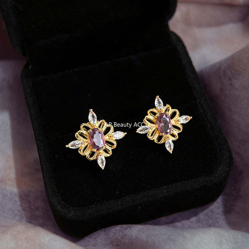 C관 - 퍼플 큐빅 문양 925 은침 귀걸이 [7106] 25.11-4