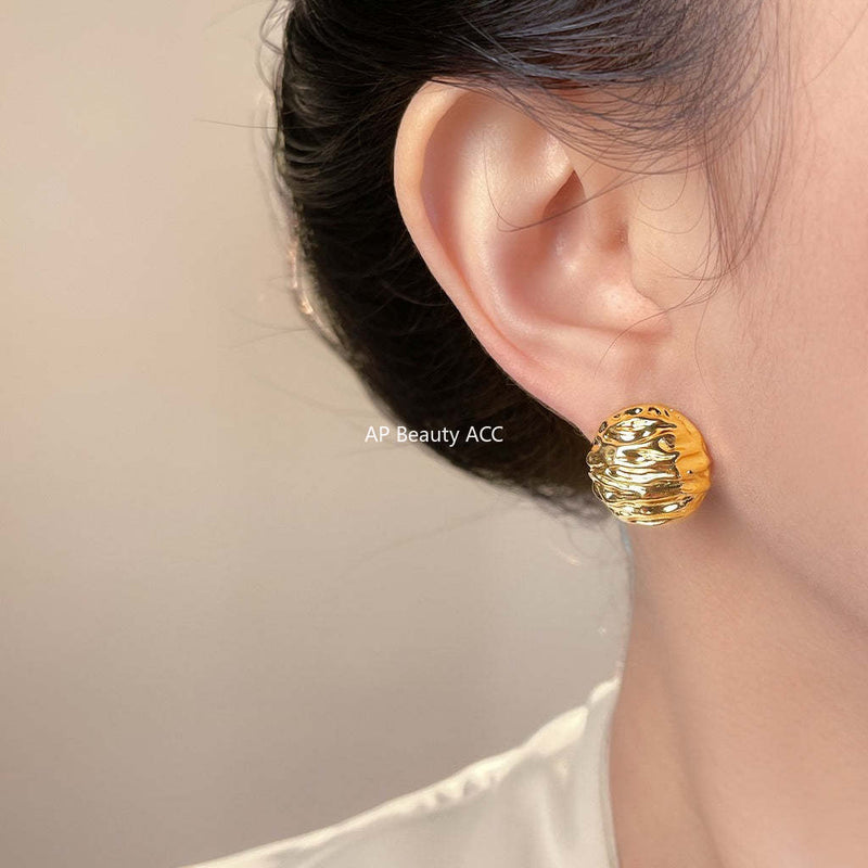 C관 - 호두 무늬 반원 디자인 925 은침 귀걸이 [7141-7142] 25.11-4