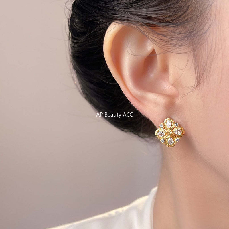 C관 - 매듭 큐빅 클로버 디자인 925 은침 귀걸이 [7155] 25.11-4
