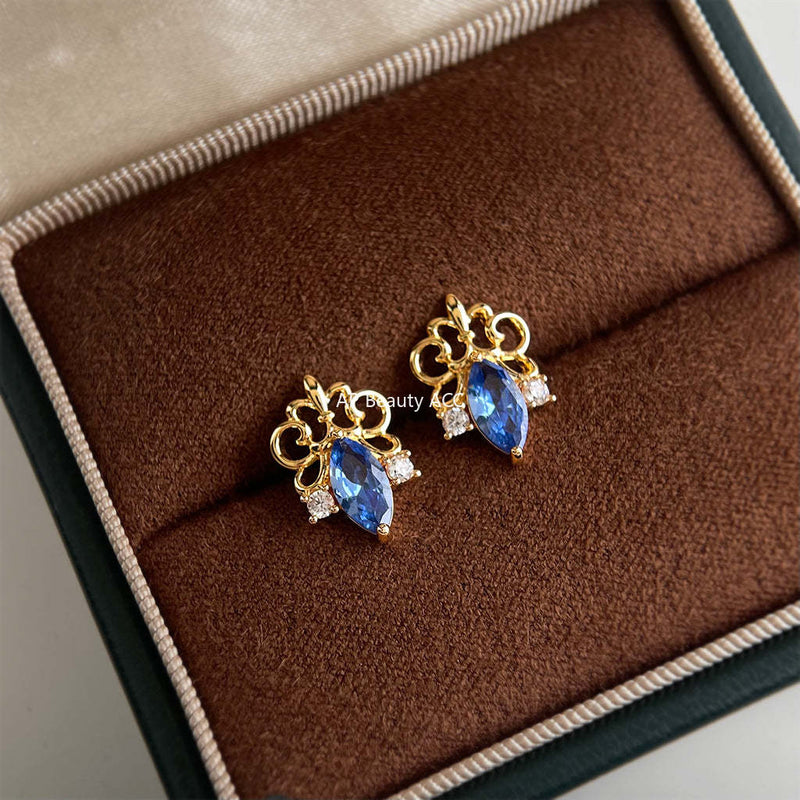 C관 - 아이리스 플라워 블루 큐빅 925 은침 귀걸이 [7163] 25.11-4