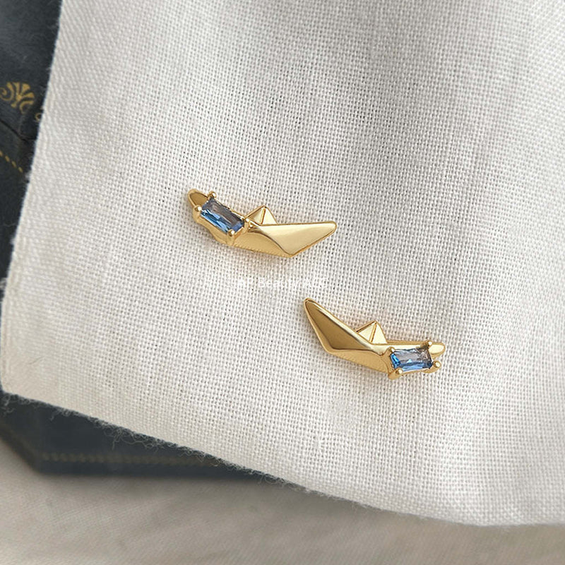 C관 - 보트 아쿠아마린 큐빅 925 은침 귀걸이 [7159] 25.11-4