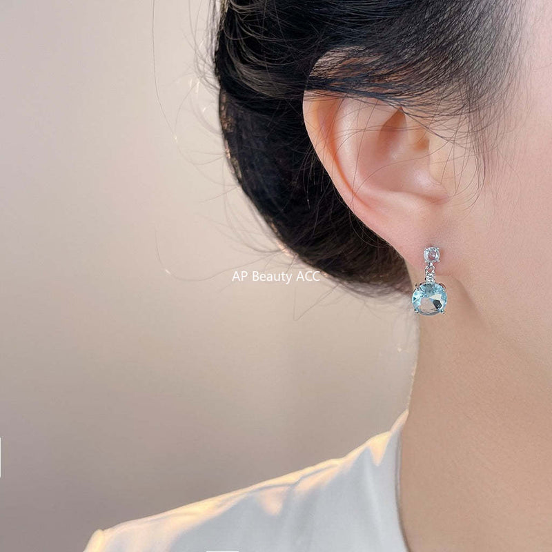 C관 - 아쿠아 블루 큐빅 드롭 925 은침 귀걸이 [7053] 25.11-4