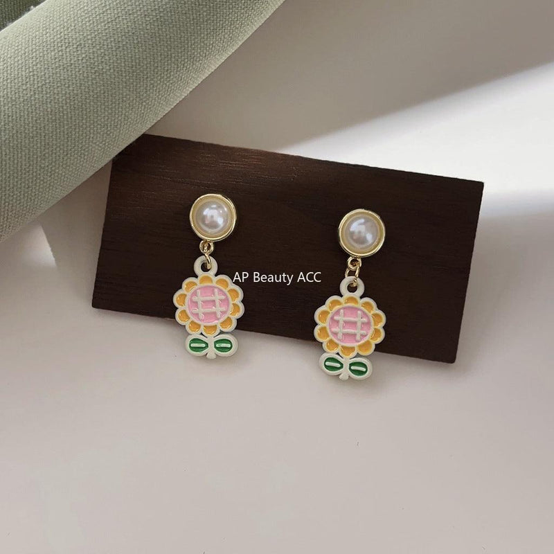 C관 - 봄 여름 청순한 해바라기 꽃 드롭 오일 코팅 14K 도금 은침 귀걸이 [3651] 24.03-4