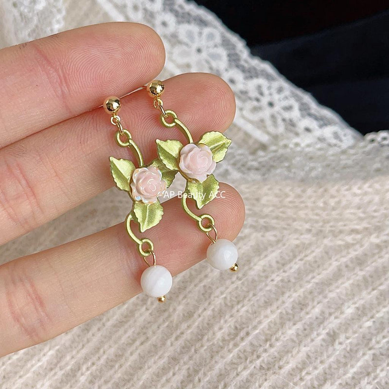 C관 - 14K 도금 프렌치 복고풍 비정형 담수 진주 꽃 은침 귀걸이 [3685] 24.03-4