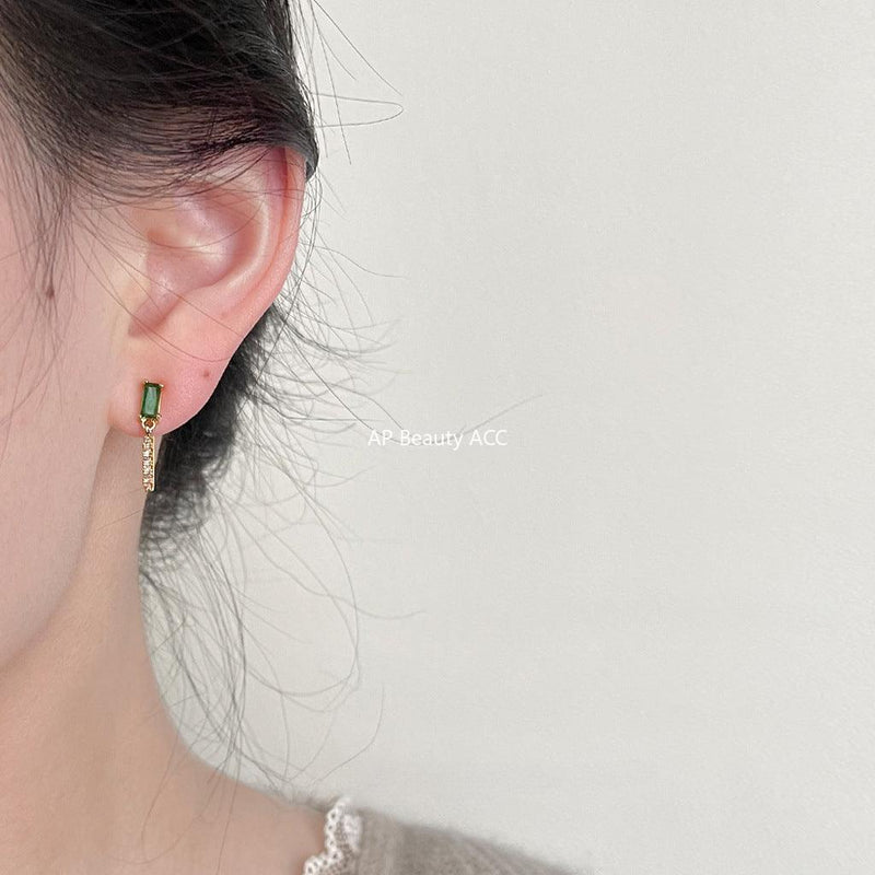 C관 - 미세 큐빅 작은 앰버 그린 은침 14K 도금 귀걸이 [3647] 24.03-4