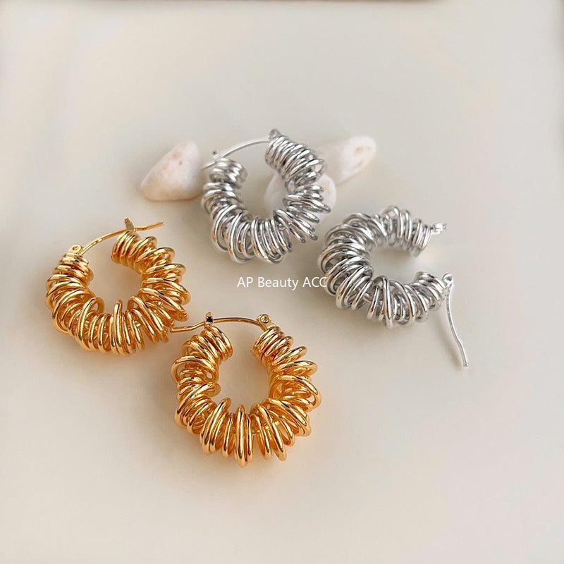 C관 - 18K 도금 두꺼운 고급스러운 기하학 원형 귀걸이 [3699-3700] 24.03-5