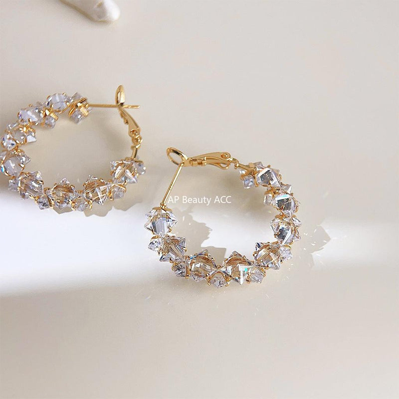 C관 - 18K 도금 두꺼운 빛나는 큐빅 기하학 원형 귀걸이 [3712] 24.03-5