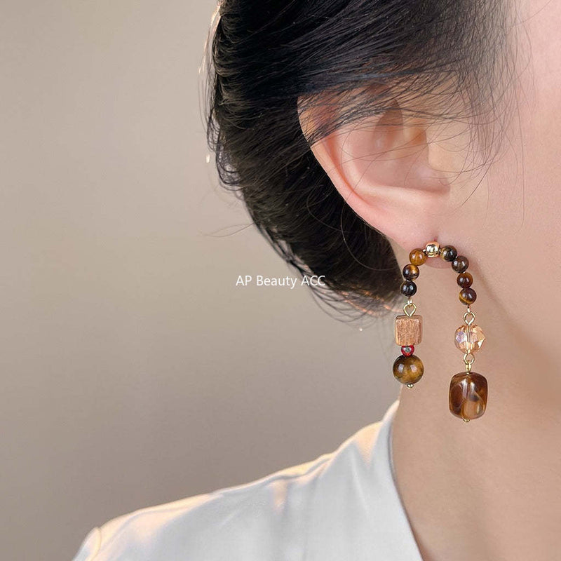 C관 - 핸드메이드 호안석 크리스탈 비즈 925 은침 귀걸이 [7116] 25.11-3