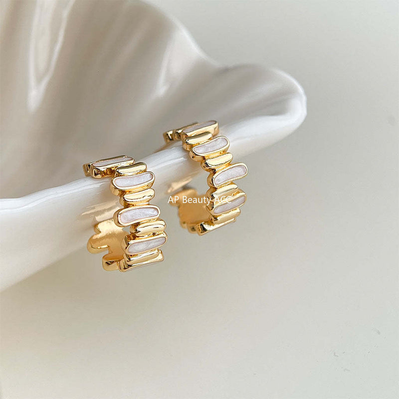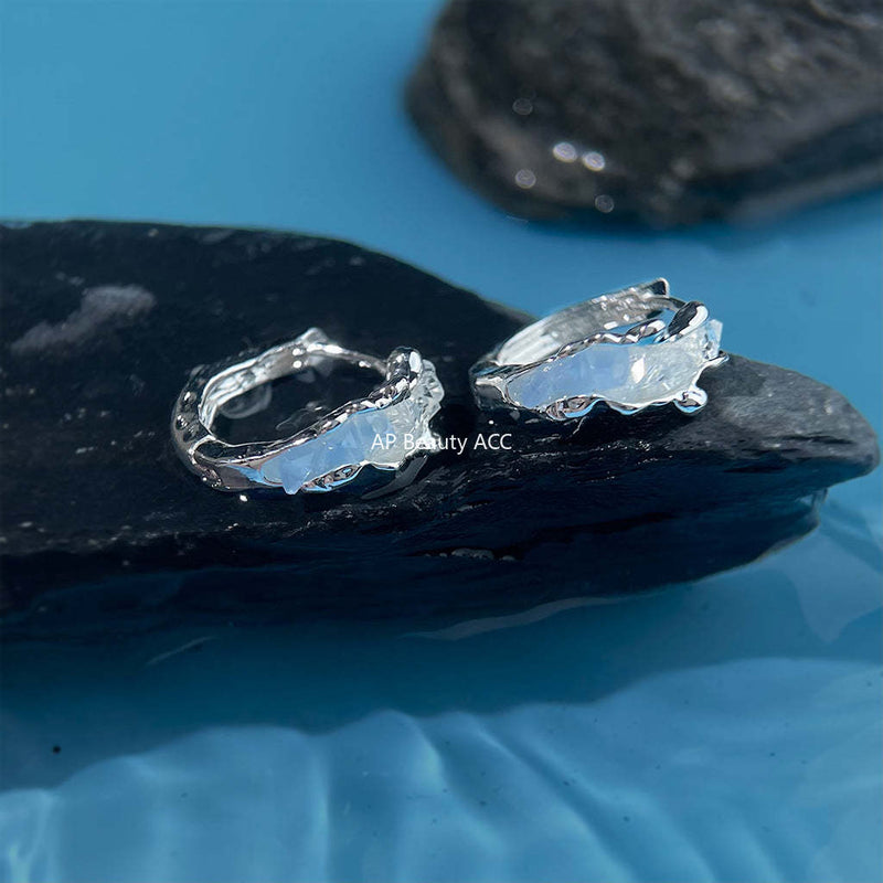 C관 - 글라스 크리스탈 원형 불규칙 디자인 후프 귀걸이 [7085] 25.11-3