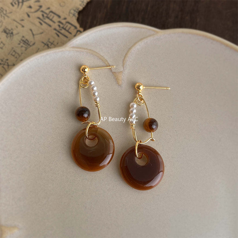 C관 - 호안석 원형 드롭 핸드메이드 925 은침 귀걸이 [7147] 25.11-4